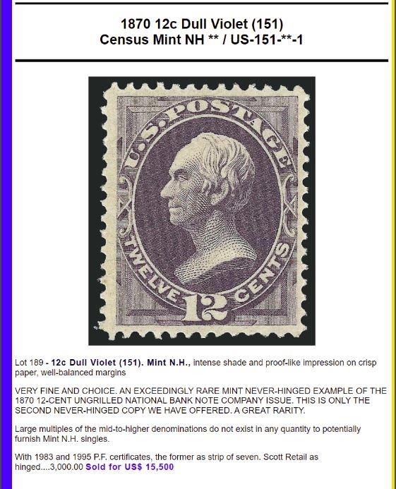 1870 12c Dull Violet (151) - Digital Handbook to stamps in never hinged, original gum, used, multiples, pairs and on cover.