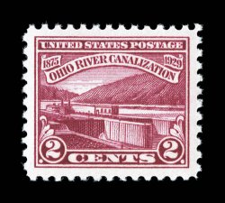627 nhu 681a 681a, 2c Ohio River, Lake shade, a most impressive mint example of this rarely offered color variety, which is listed but not priced in Scott, exceptionally well centered amid