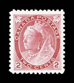 C$180.00).#77, 1899 2c Carmine, Die I, "Numeral", select mint single, exceptionally well centered within lavish margins, bright and fresh, o.g., n.h., extremely fine (Unitrade C$180.00). (Image) $60.00