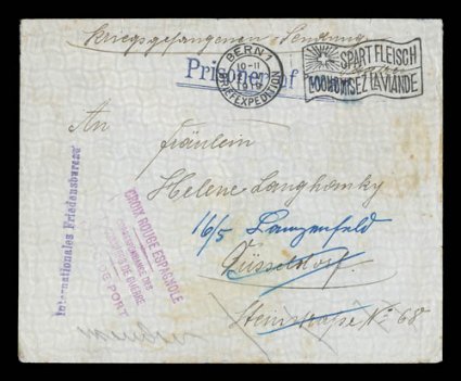 aggressively accumulating additional material to augment the Prappas exhiThe 1914 Battle of the Falkland Islands auxiliary collection/accumualtion, the consignor after acquiring the previous lot from the Prappas sale as an excellent basis, began aggressively accumulating additional material to augment the Prappas exhibition collection, from many different sources he acquired approximately 250 additional covers or picture post cards all relating the battle (several at considerable cost in the $100 to $750 range), about one-third of the items are scarce to rare covers including unusual Prisoner-of-War covers, covers posted on board various German (largely) and British warships either during the time of the war, or in the case of the German Naval covers, many are from other theaters but all were at one time involved in the Battle of the Falklands, there is a breathtaking array of picture post cards and photos of battle scenes and of the warships involved; this accumulation, combined with the previous lot, would undoubtedly be the basis for a gold-medal level exhibition collection of this important and popular military event of the early 20th century; examination essential to fully appreciate the comprehensiveness and desirability of both this lot, and the previous one. (imagea) (imageb) (imagec) (Image) Est. $3,000-4,000