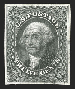 certificate.#4, 10c Black reproduction, without gum as issued, four mostly large margins, particularly fresh color and a detailed impression, very fine and choice; 1983 PF certificate. (Image) $900.00