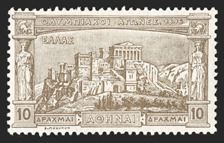 1385 og 117-28 117-128, 1896 1l-10D Olympic games cplt., fresh mint set, o.g., h.r., fine-very fine set.#117-128, 1896 1l-10D Olympic games cplt., fresh mint set, o.g., h.r., fine-very fine set. (Image) $1,264.00