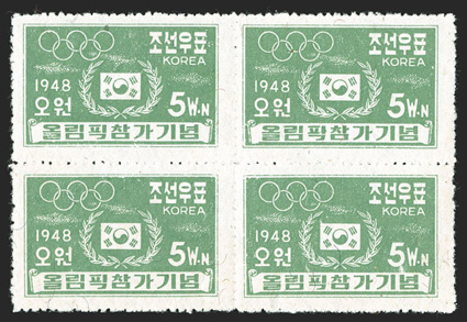 1458 nhbl 85-86 85-86, 1948 5w and 10w Olympic games cplt., mint blocks of four, o.g., n.h., two 5w with natural gum creases, otherwise very fine set.#85-86, 1948 5w and 10w Olympic games cplt., mint blocks of four, o.g., n.h., two 5w with natural gum creases, otherwise very fine set. (Image) $760.00+