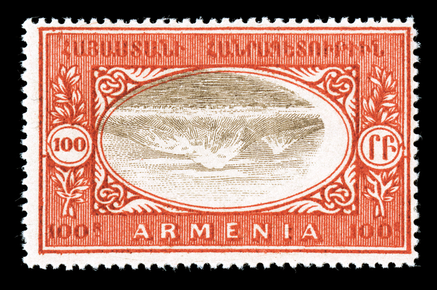 inverted centers, plus an imperforate 70R single and block of four with inverteYvert #97-101 var., 1920 25R-100R Mount Ararat or Woman Spinning, Centers Inverted, five different values (25, 40, 50, 70 and 100R) each perforated and gummed, all with inverted centers, plus an imperforate 70R single and block of four with inverted centers, without gum, all quite fresh, fine-very fine. (imagea) (Image) Est. $400-500