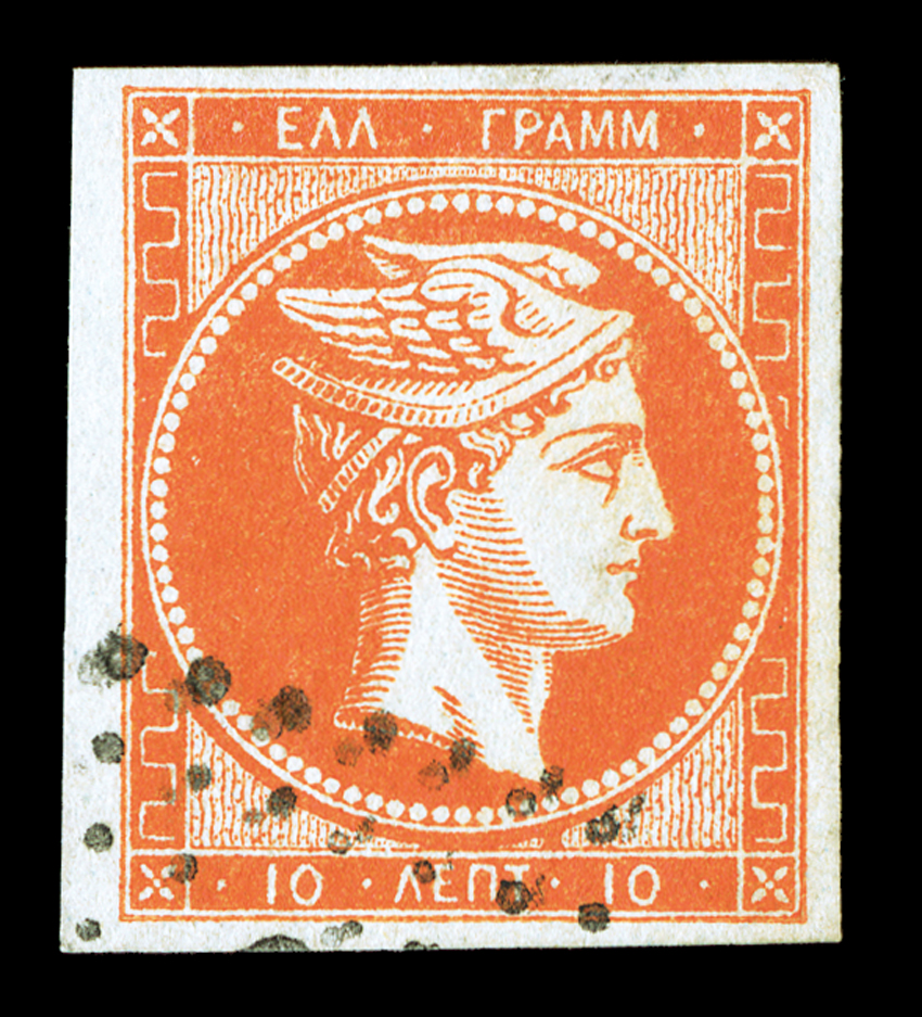 qualities, including four exceptionally large margins, stunningly ric#35b, 1870 10l Light red orange on greenish, "10" numeral on reverse Inverted and Reversed, a gem example of this unusual and rarely seen error, possessing outstanding physical qualities, including four exceptionally large margins, stunningly rich color and impression on bright paper, and a light face-free diamond of dots cancel, extremely fine; while the Scott catalog lists the inverted numeral error, it does not list it both inverted and reversed as this stamp is found; 1976 RPS certificate (Michel #35 var.). (imagea) (Image) $650.00+