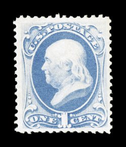 speck on gum, choice very fine clear 1989 PF certificate.#156, 1c Ultramarine, pristine mint single, brilliantly fresh color on especially bright paper, well centered within large margins, o.g., never hinged, trivial natural inclusion speck on gum, choice very fine; clear 1989 PF certificate. (Image) for hinged $300.00