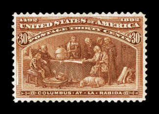 this grade).#239, 30c Columbian, well centered and margined, strong rich color, o.g., choice very fine; 2007 PSE certificate (F-VF 75 - a conservative grade in our opinion- SMQ does not price this grade). (Image) $300.00