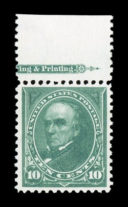 404 nh 273 273, 10c Dark green, handsome top margin partial imprint single, wonderfully bright and fresh, excellent centering, pristine o.g., n.h., extremely fine 2006 PF