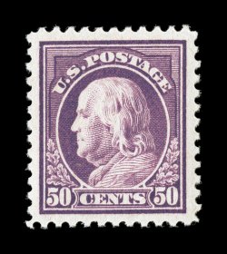 594 nhu 517 517, 50c Red violet, exceptionally well centered within particularly wide margins, brilliantly rich color and a well incised impression on fresh paper, pristine o.g., n.h.,