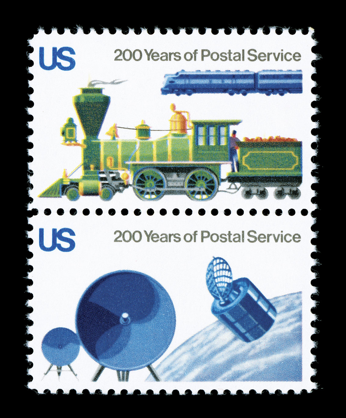 714 nh 1575b 1572-75b, 10c Postal Service Bicentennial, red omitted, two vertical pairs which make up the se-tenant block of four, bright and fresh, o.g., n.h., very fine very rare in any