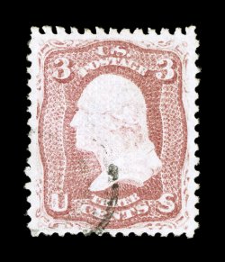 and uniformly balanced margins all around, strong color and a cris#85, 3c Rose, "D" grill, an exceptionally choice used example of this very challenging stamp, possessing outstanding centering which is almost never found on the "D" grills, large and uniformly balanced margins all around, strong color and a crisp impression on especially bright paper, easily identifiable grill, very lightly cancelled, extremely fine; a true condition rarity; 1993 PF certificate. (Image) $1,200.00