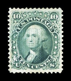 lightly hinged, extremely fine one of the finest quality origin#89, 10c Green, "E" grill, an outstanding mint example of this rare grilled stamp, being exceedingly well centered within especially large margins, strong bright color, full o.g., lightly hinged, extremely fine; one of the finest quality original gum Ten Cent "E" Grills we have ever offered in our auctions; 1988 PF certificate. (Image) $5,500.00
