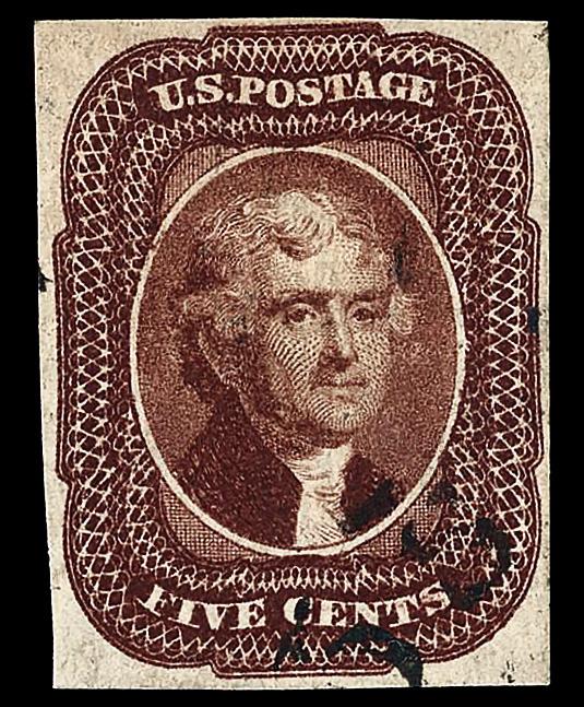 1856, 5¢ red brown (Scott 12), Fine to Very Fine, with 2025 P.F. certificate graded F-VF 75. SMQ F-VF 75; $480.....Suggested Bid $480