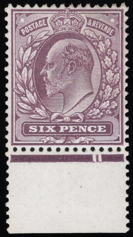 GREAT BRITAIN, 1911, 6p BRIGHT MAGENTA MINT, #135hj, quite well-centered, small part o.g., very fine, with copy of 1953 RPS cert. for pair this being the left stamp, cat. $14,375.00, Gibbons #296 @ £12,500.00....US$1,500