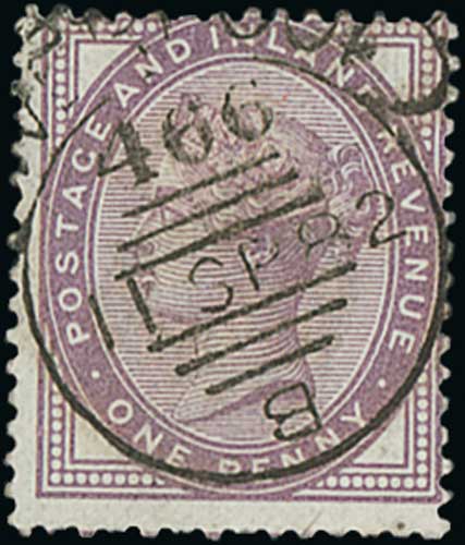 317 image1882 Experimental duplexs, first type with central "466" within bars, code "A" (25 JY) and code "C" (18 JY or 16 AU) on 1d lilacs; and second type with central date within bars and "466" above, reversed code "B" on a 1d lilac (11 SP) and unclear code on a 2d (7 SP). Very rare, type one only recorded on these two stamps, type two known on four stamps and one cover. (4). Photo on Page 130. (Image1) (Image2) (Image3) (Image4) (All Images)