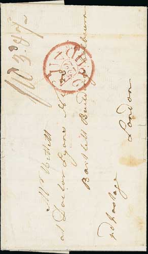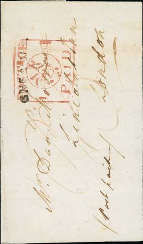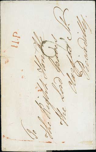 499 imageHouse of Peers. 1834 Entire sent within London with red "H.P" and "2" charge, fine and scarce. Jay 560. Photo on Page 62. (Image1)