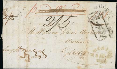 Canada/USA. 1817 (Apr 16) Entire letter from Quebec to Glasgow directed "care of Tho. W. Moore, New York" (the British Post Office agent in New York) and prepaid 18¾ cents U.S internal postage to New