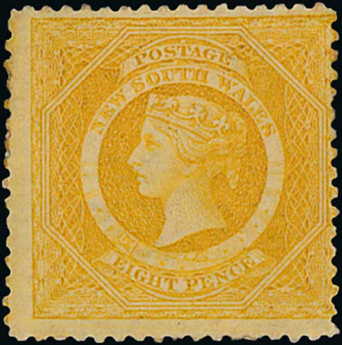 751 imageNew South Wales. 1850-82 Mint and used selection including 1850 3d yellow-green used (S.G. 39, four margins), 1851-55 2d (9, all four margins) and 1852 6d (three margins) used, 1854-59 used with 5d (four good size margins) and 1/- watermark "8" in error (S.G. 99a, very fine, good margins), 1856-59 6d used, 1860-72 perf 12 5d (straight edge at base) and perf 13 8d yellow both mint, a few faults though most are fine, imperf issues mainly four margins. (65). Photo on Page 116. (Image1) (Image2) (Image3) (Image4) (All Images)