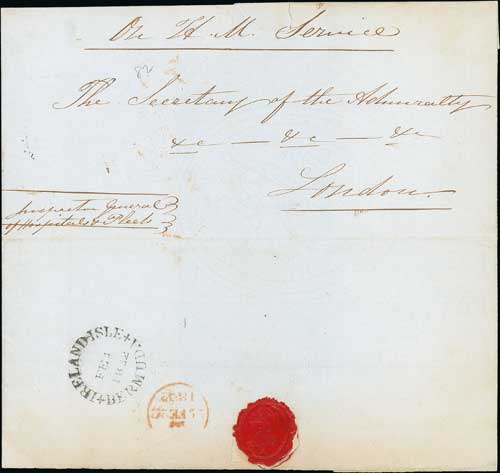 1842 (Feb 4) Entire to the Secretary of the Admiralty, London, headed "On H.M Service" and inscribed "Inspector General of Hospitals & Fleets", therefore allowed free of charge, backstamped superb "IRELAND ISLE /