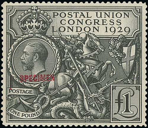 1929 £1 PUC Overprinted "SPECIMEN" in red, fine unmounted mint. S.G. 438s, £3,000. Photo on Page 16.