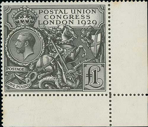 1929 £1 PUC, lower right corner single, lightly mounted mint. S.G. £750+. Photo on Page 42.