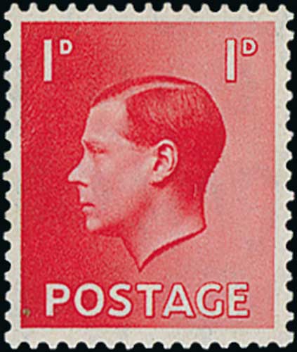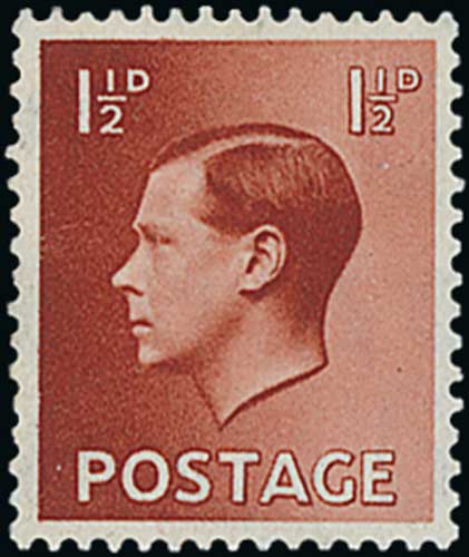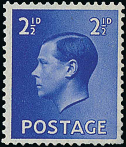 1936 KEVIII ½d - 2½d Definitive essays in the adopted colours on perforated gummed "GvR" watermarked paper, similar to the adopted design but with the value in both upper corners (the upper right value