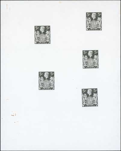 1939 KGVI High Value definitives, essay die proofs in the design adopted for the 2/6 stamp, five proofs in black each with a value of 5D, on wove paper, 203x253mm, a few minor rust marks from paper clips at left