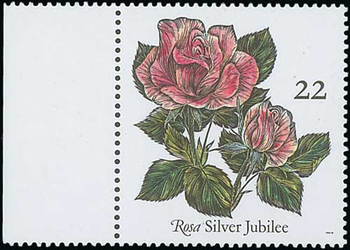 1991 Roses Congress, 22p with variety silver (Queens head) omitted, margin at left, superb unmounted mint, rare. S.G. 1568a, £1,800. Photo on Page 16. (Image1)