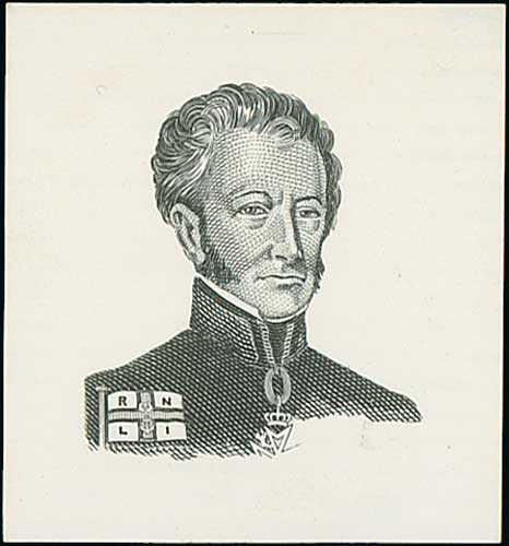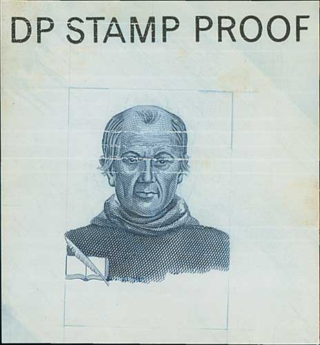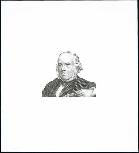 1995 Die Proof of Sir Rowland Hill engraved by Czeslaw Slania, die sunk in black on card, 78x87mm. A fine and rare proof, this design used for the 25p stamp in the Pioneers of Communication issue. Photo on Page