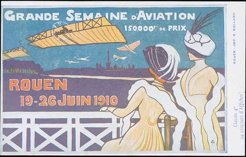 1014 image1910 Rouen Aviation Meeting. Picture postcards (33) including twenty five scarce poster cards, five cards bearing labels, one of these franked 10c tied by hexagonal "ROUEN-AVIATION / SEINE INFRE" datestamps. A fine lot. (33). Photo on Page 132. (Image1)