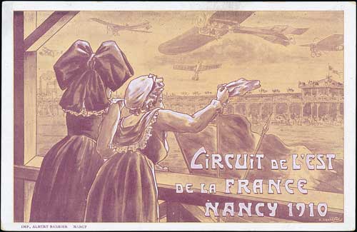 1017 image1910 Circuit of the East. Picture postcards of pilots or aeroplanes, many from Amiens or Nancy, fifteen bearing labels, two fine poster cards, one pilot signed by M. Rigal, with the "AMIENS-AVIATION / SOMME" c.d.s. (25). Photo on Page 132. (Image1)