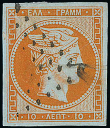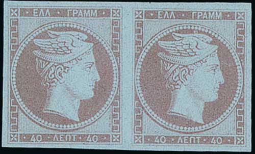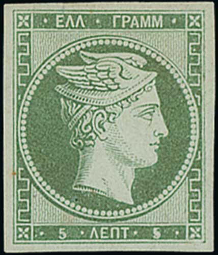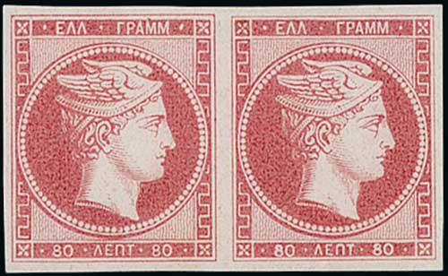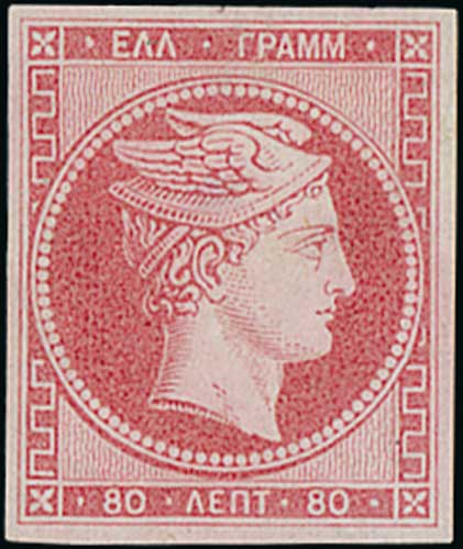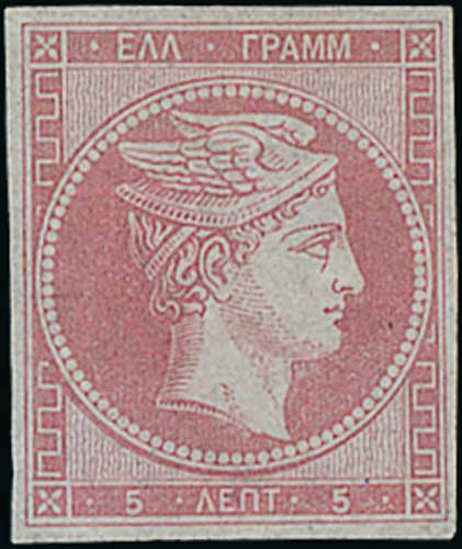 1075 May 1862 First Athens Printing, mint or unused selection comprising 1L block of four and three singles (one without gum), 2L (3, one without gum), 5L, 10L, 20L (no gum), 40L and 80L rose carmine (no gum), 5L cut into, otherwise mainly fine. (15).