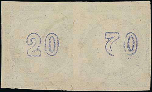 1084 1870 Special Printing under the supervision for German workmen, 1L unused no gum (small ink mark on face) and used, 20L mint and used (14, one on an entire), two with variety inverted "20" control on reverse (both three margins), some faults. S.G. 30/1. (17).