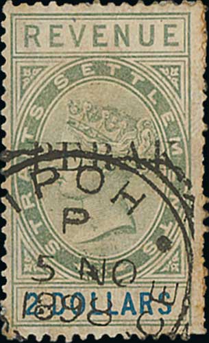 1376 imageRevenue. c.1888-90 Overprints on Straits revenues, Barefoot large overprint type A (7, $2 with Ipoh Post Office squared circle), medium overprint type B (22) including 5c overprint double one inverted (2, one a little toned) and small overprint type C (6), seven mint, a few faults. (35). Photo on Page 10. (Image1) (Image2) (All Images)