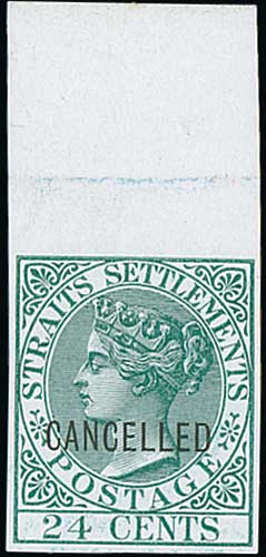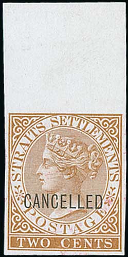 1385 image1867 2c, 4c, 6c, 8c, 12c, 24c (2) and 32c Imperforate plate proofs in near issued colours on white glazed unwatermarked paper, each overprinted "CANCELLED" type D9, 2c and one 24c marginal, 32c a little discoloured, otherwise fine. (8). Photo on Page 166. (Image1) (Image2) (All Images)