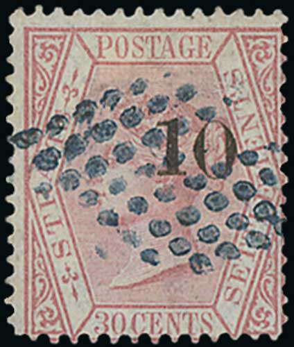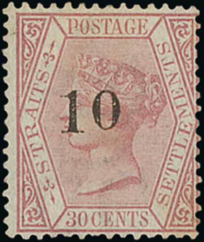 1389 image1880 (Apr) 10 on 30c Surcharge type g fine mint, scarce. S.G. 36, £2,500. Photo on Page 178. (Image1)