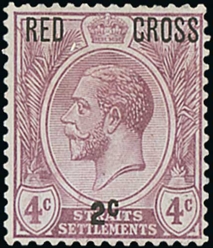 1400 image1917 Red Cross 2c surcharges mint and used, including 2c on 4c variety no stop mint, with B.P.A Certificate (1958). S.G. 216/7a, £637. (6). Photo on Page 178. (Image1)