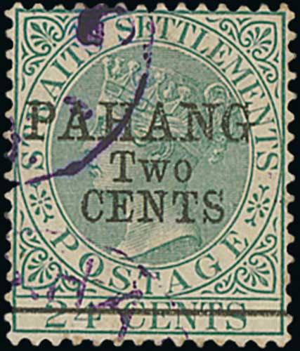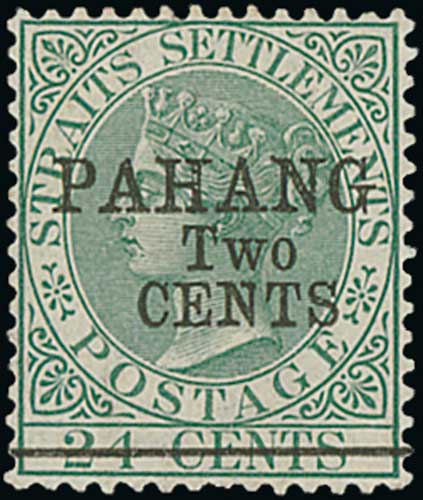 1519 image1889-91 Overprints and surcharges on Straits, including S.G. 1 mint and used, S.G. 6 with preprinting paper fold mint, S.G. 7 mint (2), S.G. 9 mint (2) and used. S.G. £2,600. (12). Photo on Page 178. (Image1) (Image2) (Image3) (All Images)