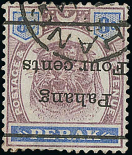 1521 image1891-99 Mint and used issues with 1898 10c - 50c overprints on Perak mint, 1899 4c surcharges including 4c on 8c surcharge inverted used (thinned but very scarce), etc. S.G. £1,800 (+ S.G. 25a, £1,800). (39). Photo on Page 178. (Image1) (Image2) (Image3) (All Images)