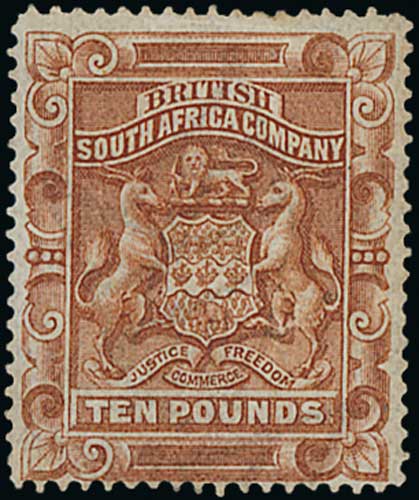 1739 image1892 £10 Brown mint, large part original gum, very light crease close to upper perfs. S.G. 13, £3,250. Photo on Page 164. (Image1)