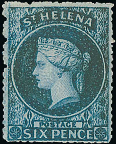 1749 image1861 6d Blue, watermark Large Star, rough perf 14 to 16, fine mint, large part original gum. S.G. 2a, £425. Photo on Page 164. (Image1)