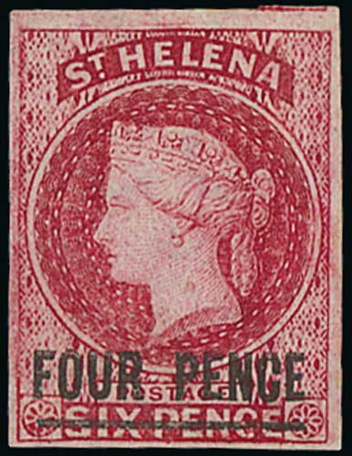 1750 image1863 Imperforate 1d lake (both types) and 4d carmine all fine mint, four good margins and virtually full original gum. S.G. 3/5, £810. (3). Photo on Page 164. (Image1)