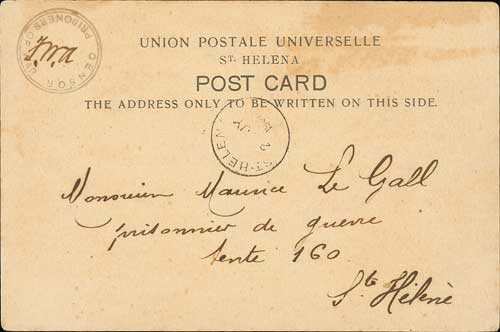 1900 (July 2) Stampless picture postcard "Greetings from St. Helena" written by the French P.O.W and renowned artist Le Gall in Deadwood Camp, apparently self addressed to Le Gall in tent 160, posted unpaid and