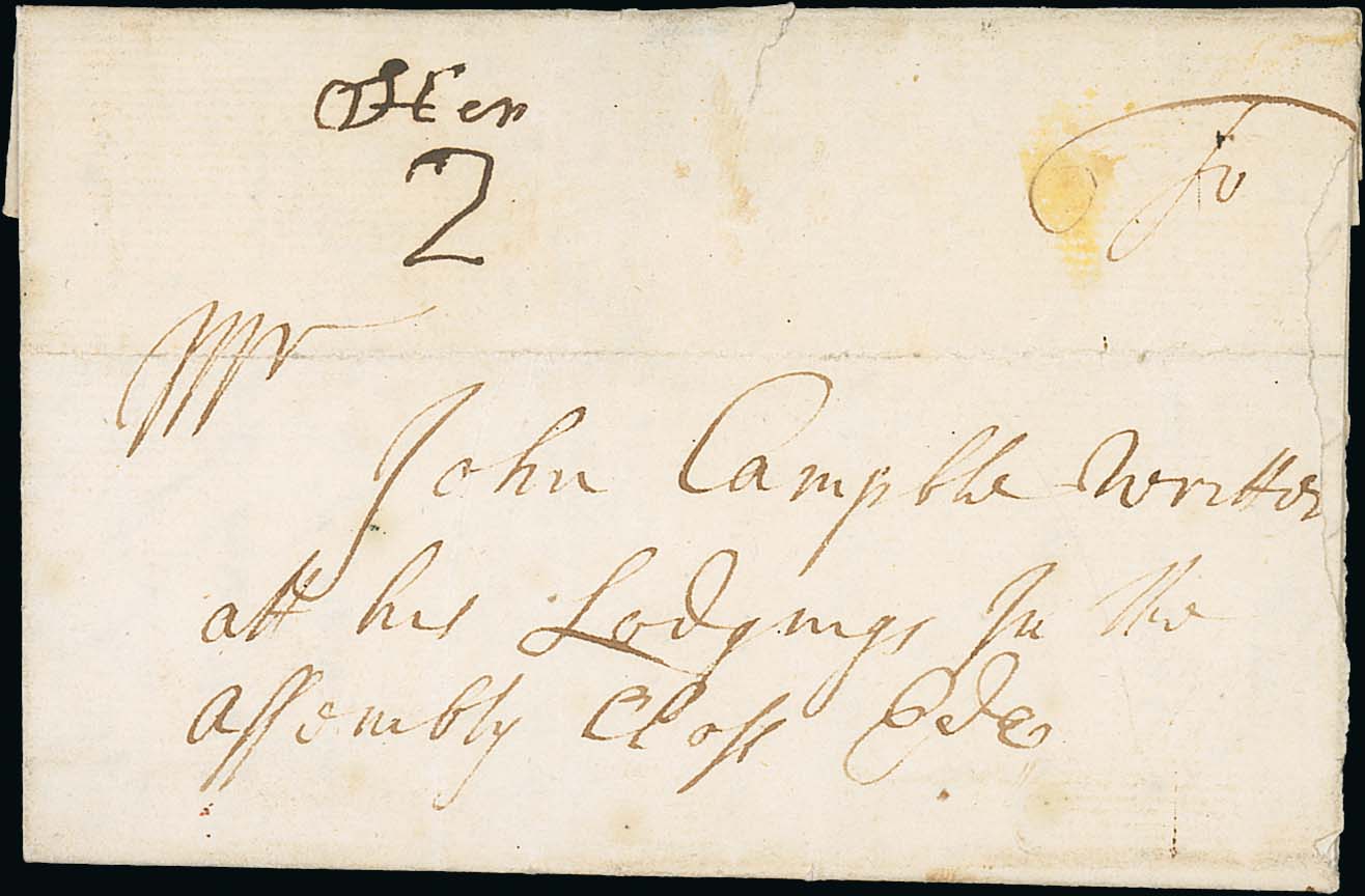 646 imageStirling. 1735 (Aug 28) Entire letter from Braco to Edinburgh with manuscript "Ster 2", very scarce, manuscript town endorsements recorded from Sterling from 1731 to 1736. Photo on Page 86. (Image1)