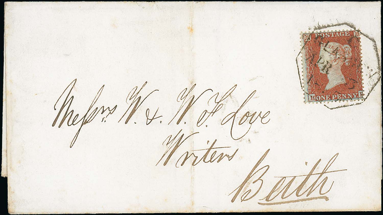 741 image1855 (Apr 3) Cover to Beith franked 1d, cancelled by eight sided Glasgow datestamp, intended for use as a backstamp only, very unusual and scarce used as a cancellation. Photo on Page 102. (Image1)