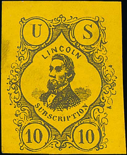 792 imageU.S.A. 1864 Lincoln Subscription stamps for 2, 3, 4, 10 or 12 cents on differing coloured papers, 3c with some surface loss, a couple of others with minor faults, very scarce. (5). Photo on Page 108. (Image1)