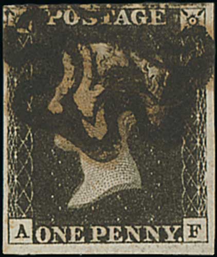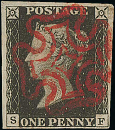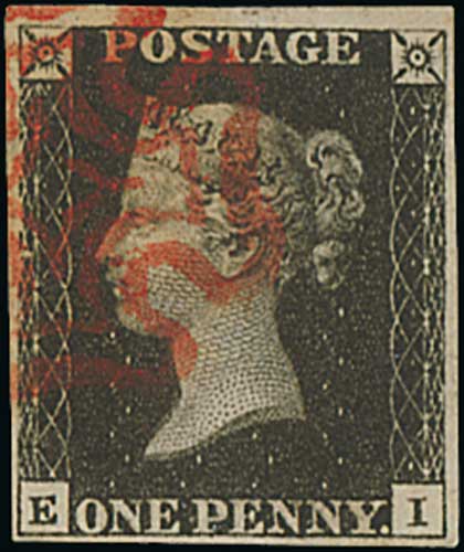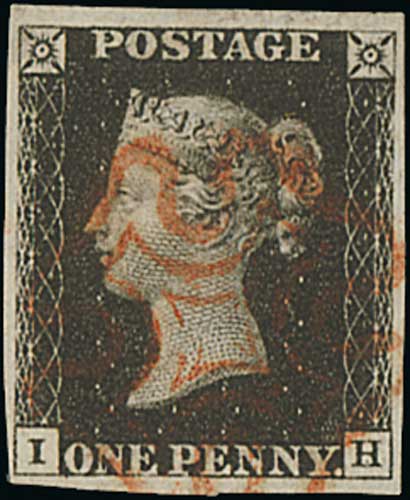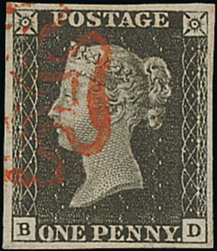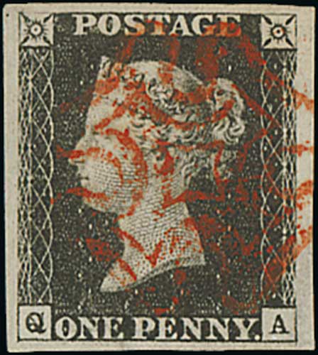 76 image1840 1d Black, QA plate 4 used with a red Maltese Cross, huge even margins, an exceptional stamp. Photo on Page 12. (Image1)
