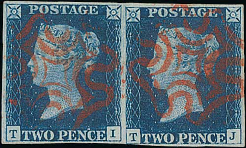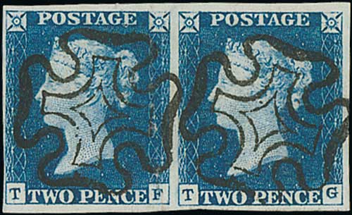 84 image1840 2d Blue, TF - TG plate 1 pair, good to large margins, each with a superb black Maltese Cross, TF with vertical crease, still a stunning looking pair. Photo on Page 12. (Image1)