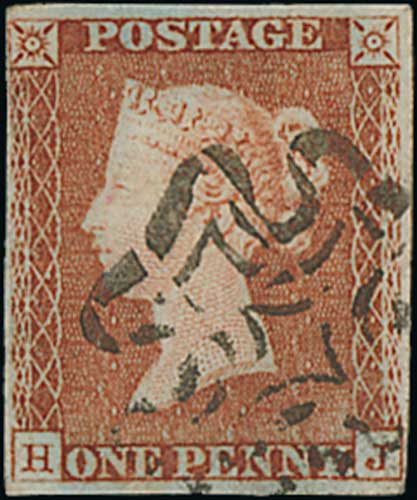 90 image1841 1d Pale red-brown, HJ plate 18, small to good margins, with the distinctive Wotton-Under-Edge Maltese Cross in black, very scarce. With B.P.A Certificate (1981). S.G. £4,500. Photo on Page 12. (Image1)