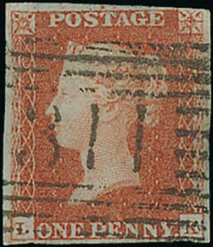 92 image1847 1d Red-brown plate 75, LK with Union Jack re-entry, four margins, used with Scottish "311" numeral of Stow. S.G. £3,000. Photo on Page 12. (Image1)